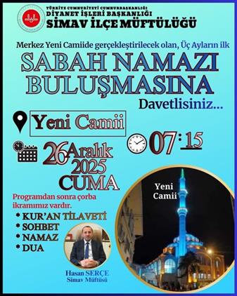 Yeni Camiide gerçekleştirilecek olan üç ayların ilk sabah namazı buşlasında sizleri de aramızda görmekten mutluluk duyacağız...