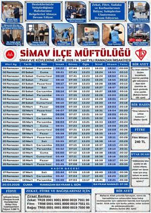 2026 YILI RAMAZAN İMSAKİYEMİZ