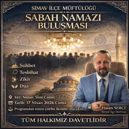 Simav İlçe Müftülüğümüzün organizesinde, Merkez Yeni Camii'de düzenlenecek olan sabah namazı buluşmamıza tüm halkımız davetlidir.